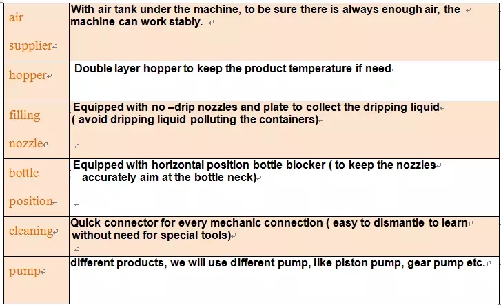 ម៉ាស៊ីននេះត្រូវបានផលិតឡើងជាពិសេសសម្រាប់ viscosity / រាវគ្រប់ប្រភេទនៅក្នុងឧស្សាហកម្មម្ហូបអាហារឧស្សាហកម្មគីមីនិងកំប្លែងដូចជាប្រេងម៉ាស៊ីនប្រេងម៉ាស៊ីនសាឡាត់លាងជែលលាងប្រេងដូងប្រេងដូងទឹកស៊ីអ៊ីវល្ងសាប៊ូសាប៊ូរាវប្រេងម៉ាស៊ីន។ ប្រេងហ្វ្រាំងប្រេងឆាប្រេងឆាទឹកប៉េងប៉ោះភេសជ្ជៈប្រេងសំខាន់ៗប្រេងបន្លែទឹកឃ្មុំទឹកស៊ីអ៊ីវប៊ឺសណ្តែកដីទឹកដោះគោជូរទឹកផ្លែឈើភេសជ្ជៈ។ រាល់ផ្នែកដែលទាក់ទងជាមួយរាវ / ទឹកជ្រលក់គឺម៉ាស៊ីនអ៊ីណុកដែលមានគុណភាពខ្ពស់។ ប្រកាន់ខ្ជាប់នូវស្នប់បូមសម្រាប់ការបំពេញ។ ដោយកែសំរួលស្នប់ទីតាំងវាអាចបំពេញដបទាំងអស់នៅក្នុងម៉ាស៊ីនបំពេញមួយដោយមានល្បឿនលឿននិងមានភាពជាក់លាក់ខ្ពស់។